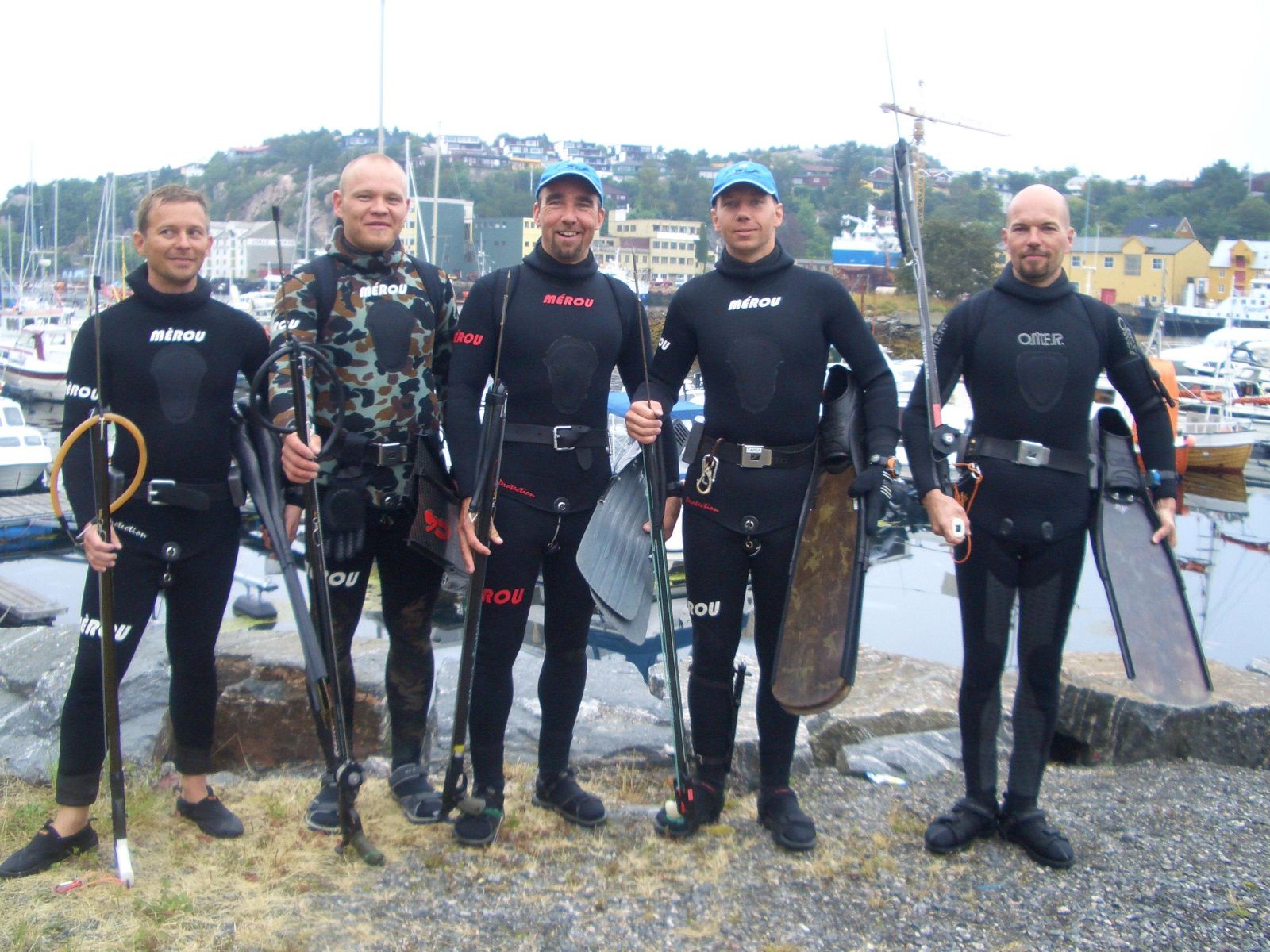 Saaristomeren sukeltajien sukelluskalastajien edustajistoa Kristiansundissa. (2 oto sukeltajaa uupuu)