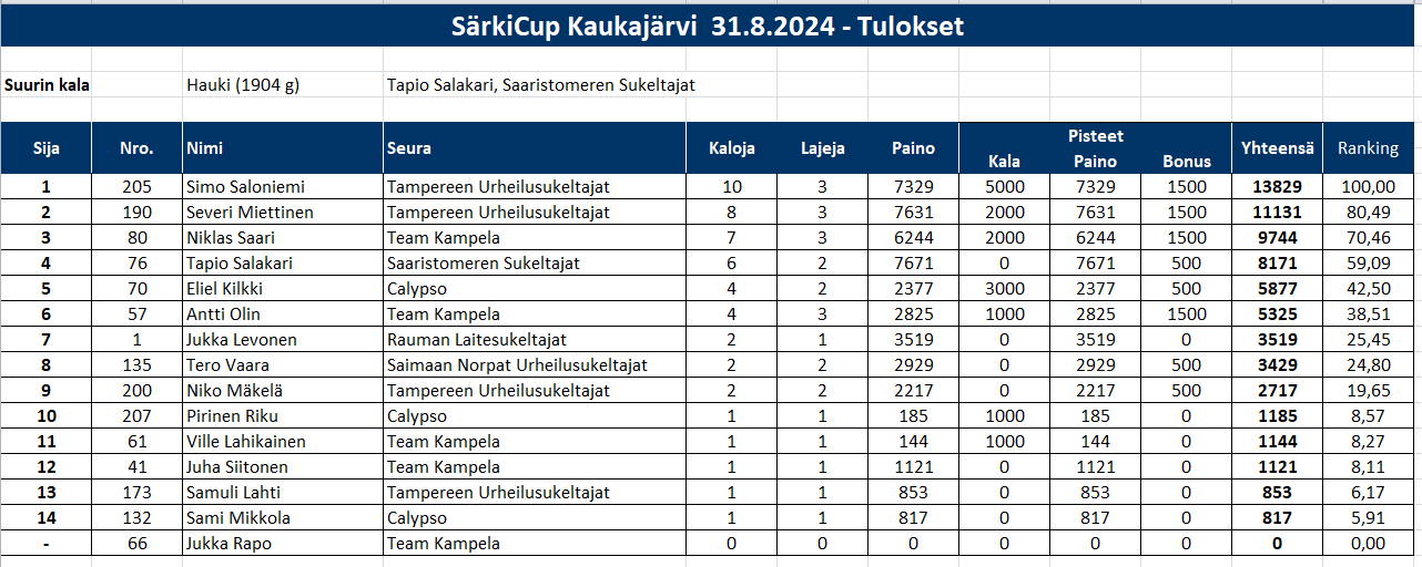 katsotaan voittajaksi se henkilö tai joukkue, jolla on eniten kaloja.