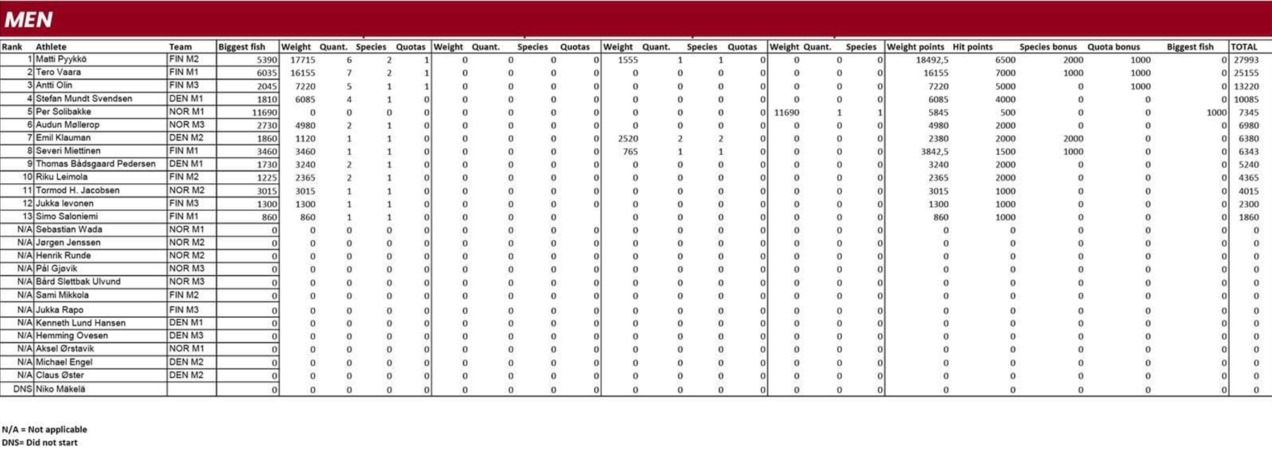 Mikäli edelleen ollaan tasatilanteessa ratkaisee suurin kala.