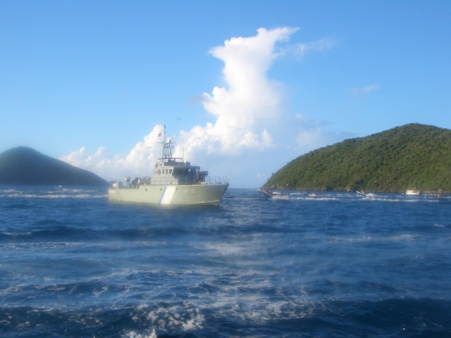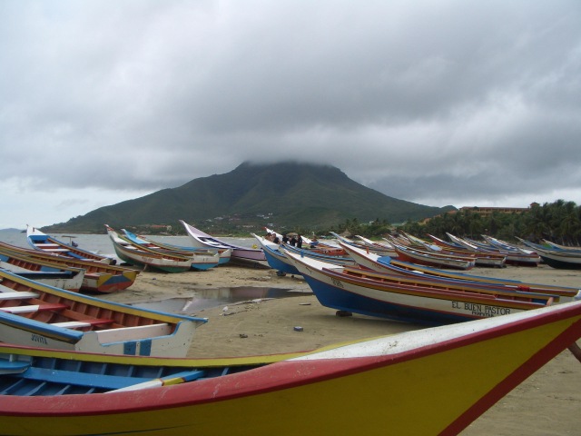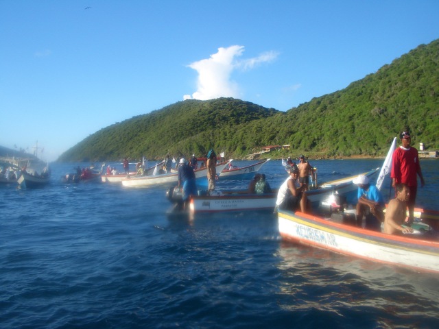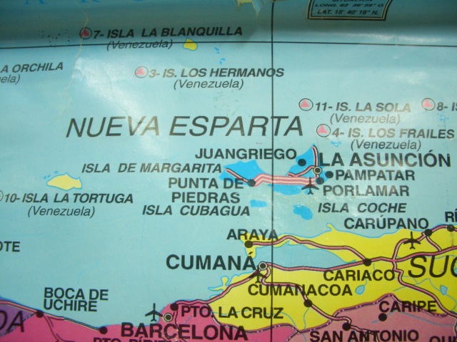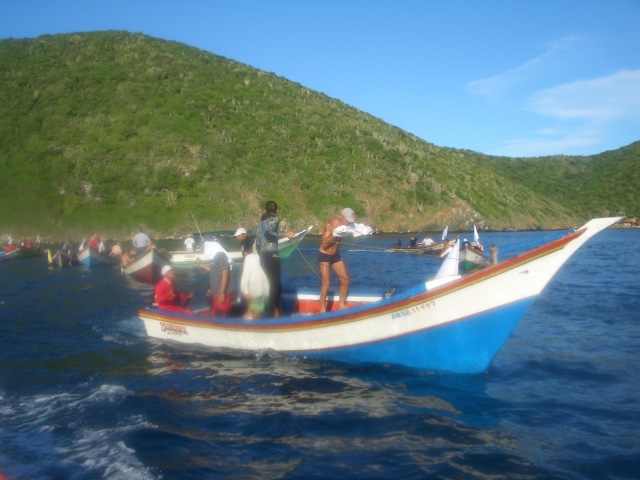 Liput taustalla, edustajistoa edustalla. Los Hermanos, Los Frailes, Upeita saaristoja.