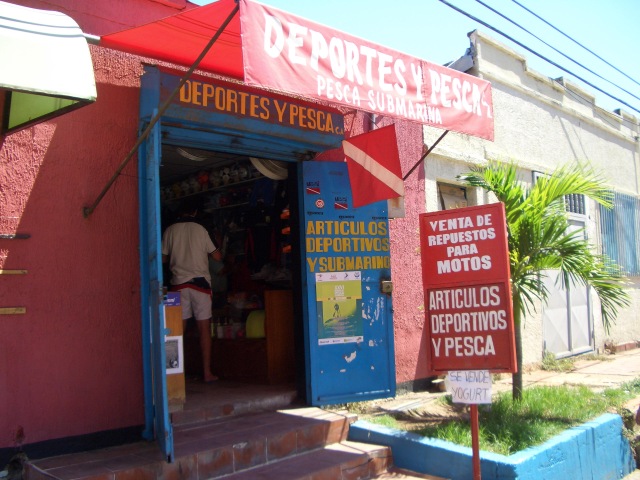 Porlamarissa paikallinen sukelluskauppa. Juan griegon paikalliset päälliköt Pertsa kotikonnuillaan. Abierto hotel 1 kk asuttuna.