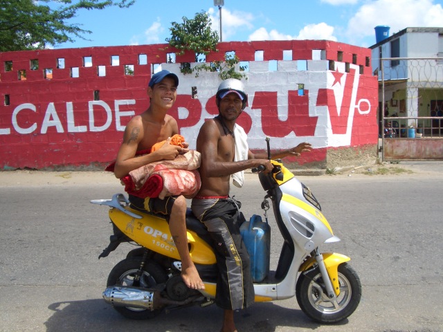 Kilpailu starttia odotellessa. ...ja sitä samaa lähtöujellusta. Hugo Chavezin kannattajat mukana kisoissa.