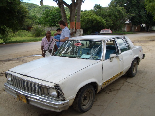 Yksi taksestamme. Lähenpi tutkailu paljastaa kunnon. Kattokin on lähtenyt jo jokunen 100.000 km sitten.