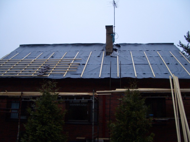 Tuuletusrimat aluskatteelle, Wanhojen ruoteiden päälle. Puolella kax, pientä paikkausta ja lisäeristystä.