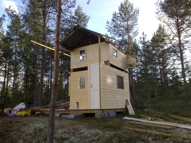 Alkujaan piti noutaa K-Rauta, Bauhaus tms. valmis mökki. Kierrosta tehdessä tuli eteen,