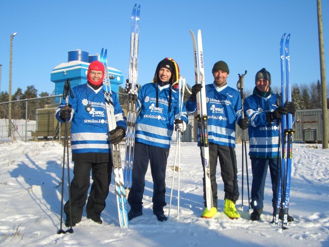 Mukana oli 4 kisaajaa, Heikki Merimaa, Pekka Kemppainen, Vesa-Matti Väärä, Tapio Salakari. Suoritimme rataan tutustumiskierroksen, jota kaikki tietävät mikä lenkki hiihdellään.