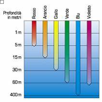 Taulukosta näet mikä väri katoaa, missäkin syvyydessä.